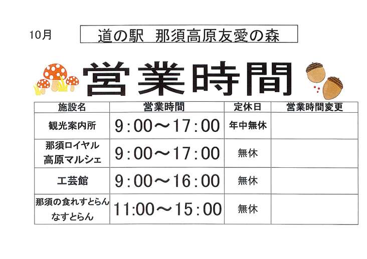 道の駅那須高原友愛の森営業時間・定休日についてお知らせ